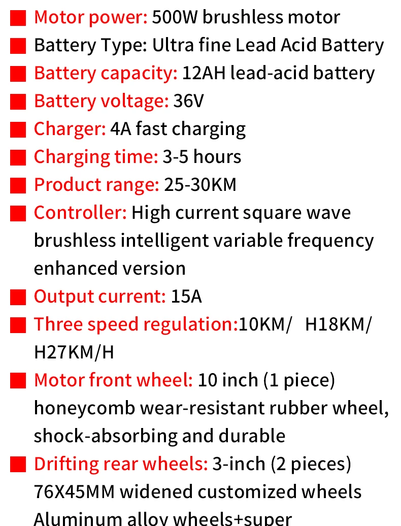 Engine Capacity: 500W brushless motor