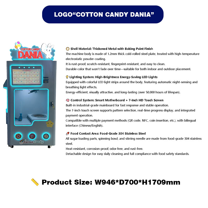 • Automatic Stainless Steel Cotton Candy Vending Machine Touch Screen LED Lighting Commercial Self-Service Mall Amusement Park