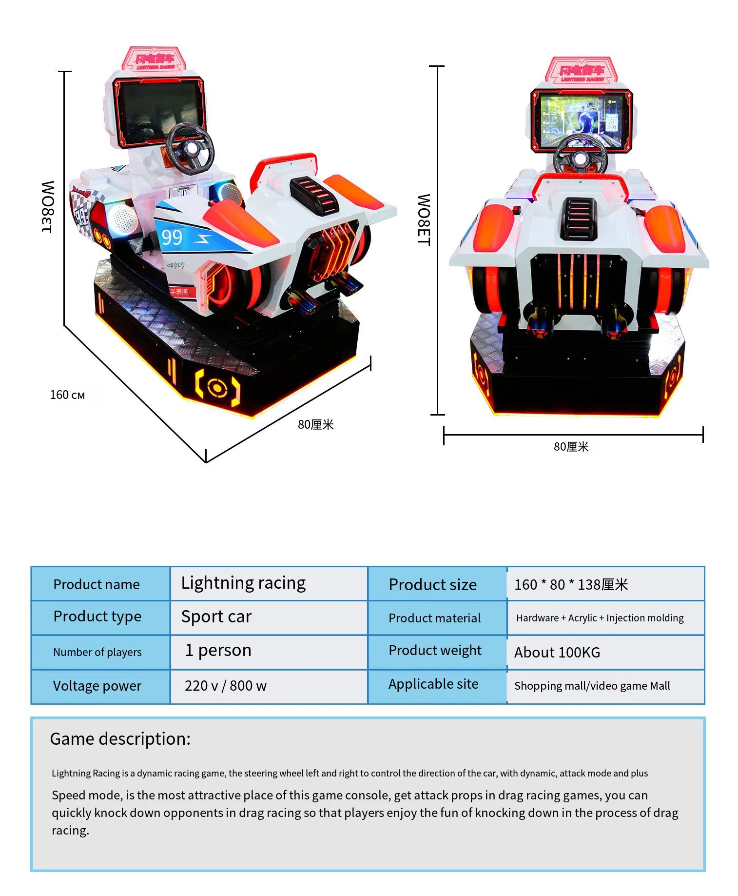 Size: 80*160*138CM