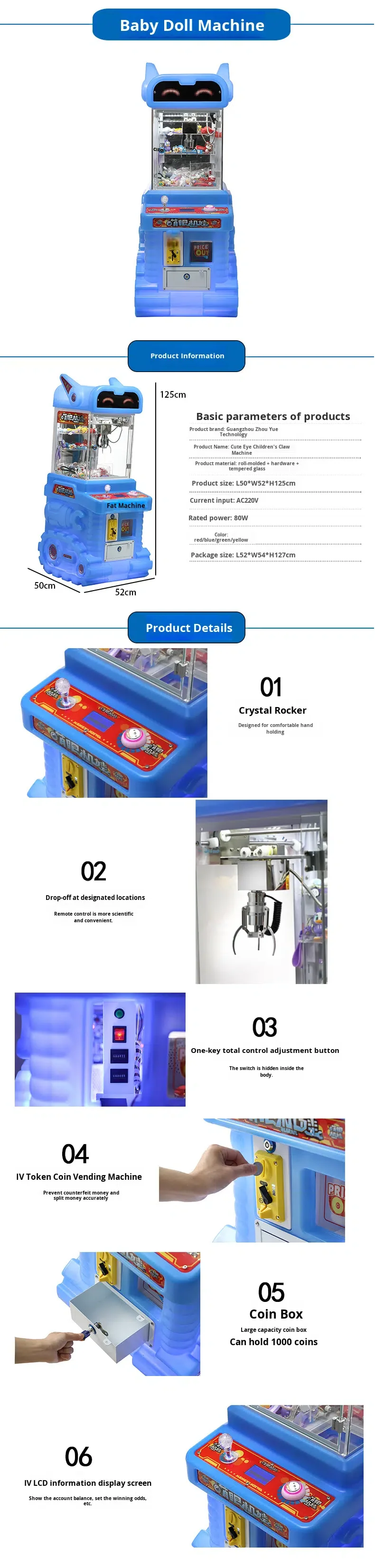 Doll Machine, Coin Operated Machine, VR Device, Vending Machine, Plaza Car