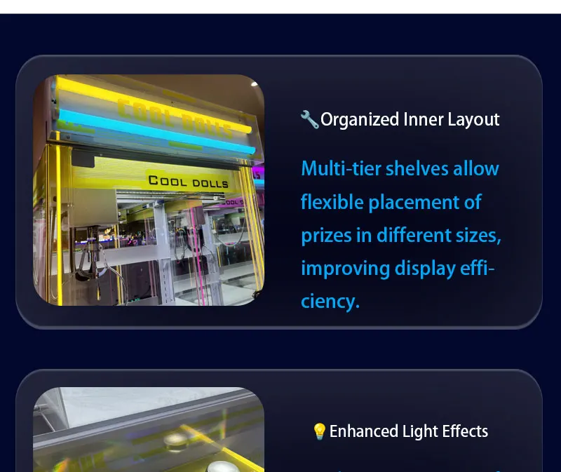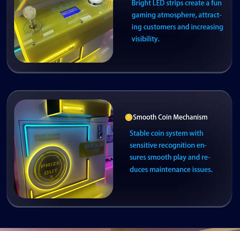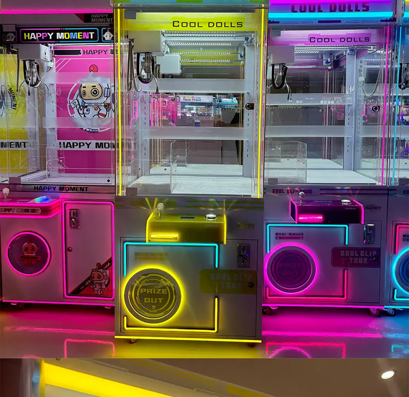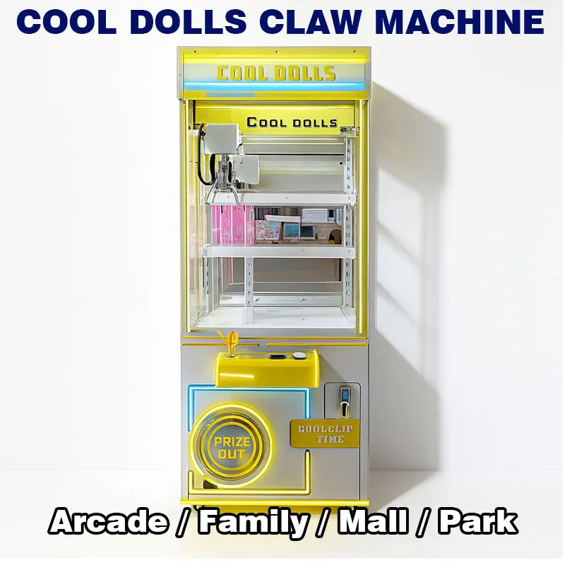 • Ninix Yellow-Silver Themed Commercial Self-Service Interactive Entertainment Equipment LED Lighted Metal Unattended Doll Machine