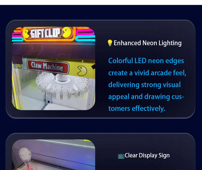• Colorful LED Lighted Metal Commercial Self-Service Claw Machine Precise Operation Entertainment Equipment for Malls Retail