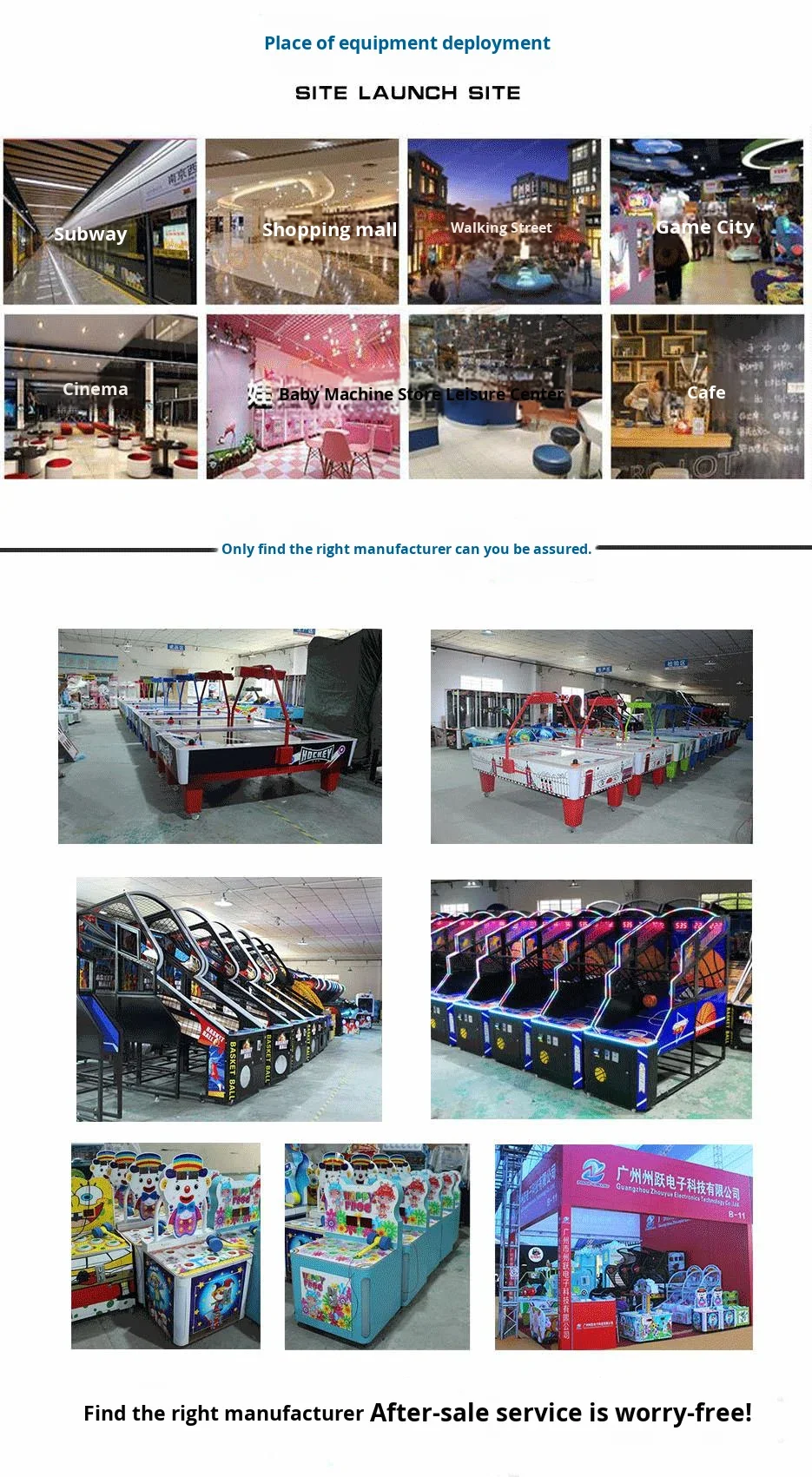 Guangzhou it bear animation technology company, located in Guangzhou Panyu District China animation amusement equipment manufacturing base. We set the research and development, production and sales of coin-operated game machines as one, is a one-stop resource center for video game equipment! More than 10 years engaged in the manufacturing, supply and operation of entertainment game consoles. Bear Animation has been committed to the development and production of amusement equipment coin-operated games, including claw game series, arcade gift machine series, arcade simulation game series, redemption game series, children's arcade game series, children's amusement facilities and mini park amusement facilities, action simulation games, ticket exchange games, coin games, prize exchange games, arcade games. Such as 3-6 carousels, children's trains, bumper cars, animal amusement facilities, etc. After years of efforts, we have continuously developed and produced a number of high-end game consoles, some of which have obtained ROHS test reports and CE certification. Products sell well in domestic and foreign markets (Southeast Asia, the Middle East, Europe and the United States), well received by customers. With the core values of "focus on quality, wholeheartedly service", we work hard, pay attention to details, create high-quality products, so that management is reflected in every tiny link, and every product is our continuous efforts. The company has more than 100 employees, has 8,000 square meters of exhibition hall and workshop, can produce 5,000 units of equipment output per month, the factory spot chassis has more than 500 semi-finished products can be customized, the exhibition hall can visit the finished equipment has more than 800 units to provide options. Welcome to visit the company to buy equipment. We offer one-stop services including budget planning, product design, quality control, packaging, shipping and after-sales support. Our quality products and services are sold all over the world, with a strong presence in North and South America, Europe, the Middle East and Africa. Sincerely welcome you to visit or contact our company, win-win cooperation!